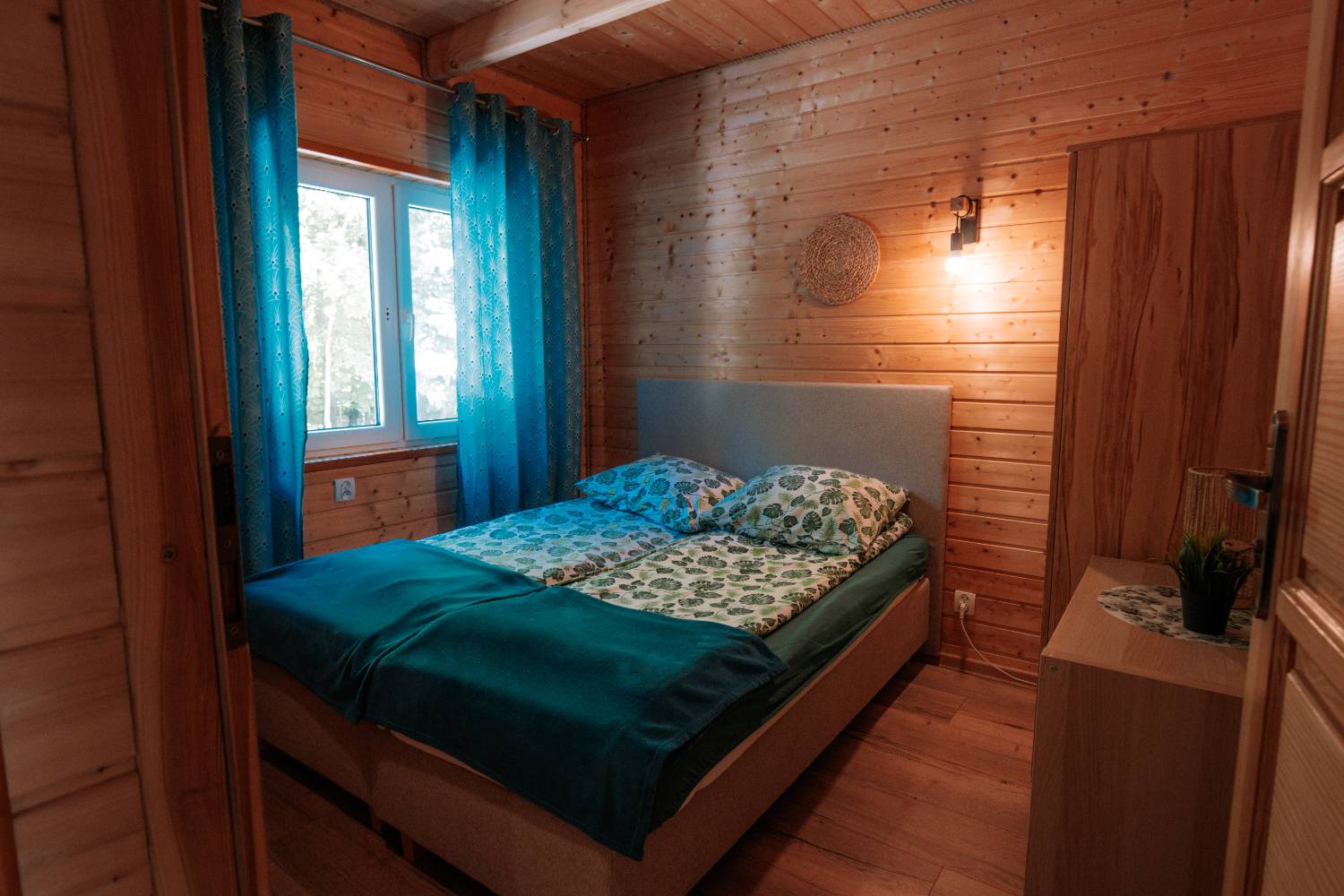- Sypialnie: na parterze sypialnia dwuosobowa plus salon, na piętrze sypialnia czteroosobowa.